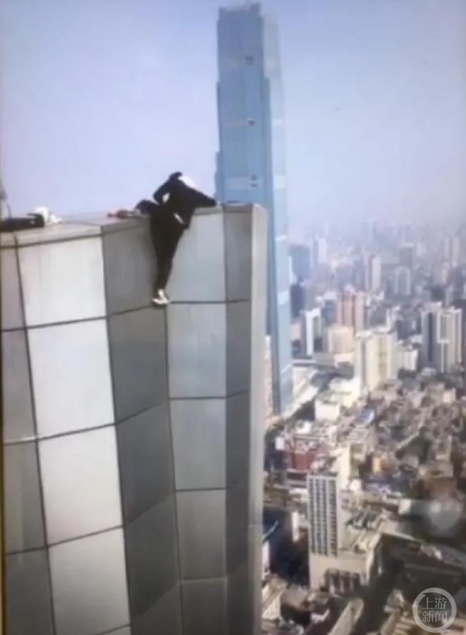 这段长约19分钟的视频显示,大楼上的吴永宁先是尝试了一次,然后重新回到顶楼平台。大约12分钟,吴永宁做了第二次尝试,他贴着墙面做了两次引体向上。视频中,可以看出吴永宁有些体力不支,他的双脚贴在玻璃墙面勉强支撑着,想努力要往上爬。挣扎了大约20秒最终坠落了。在坠落的那一刻,吴永宁发出了一声惨叫。