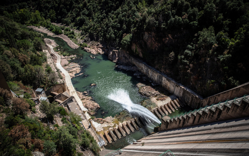 当地时间2022年8月20日,西班牙维拉诺瓦德索,水从大坝倾泻而下。