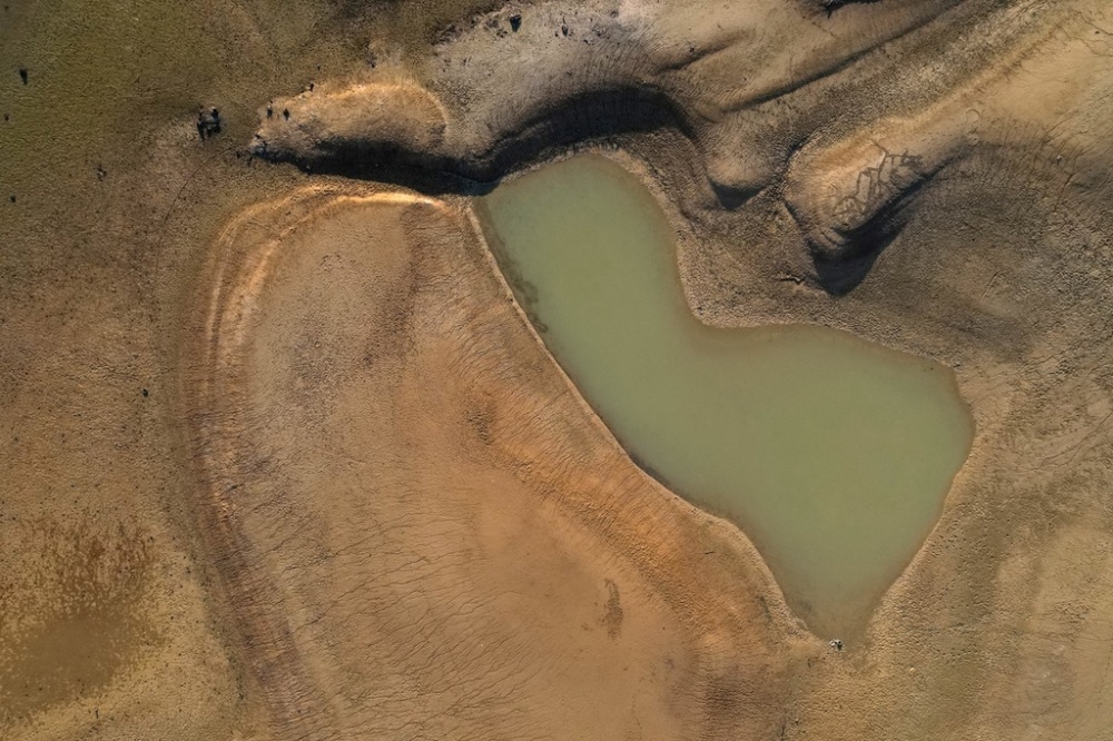 当地时间2022年8月20日,西班牙维拉诺瓦德索,干旱导致水库的水位较低。