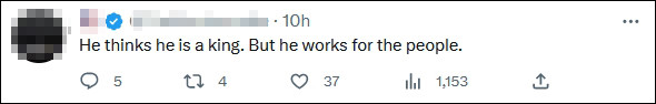 还有人说:“他以为自己是国王,但他是为人民服务的。”