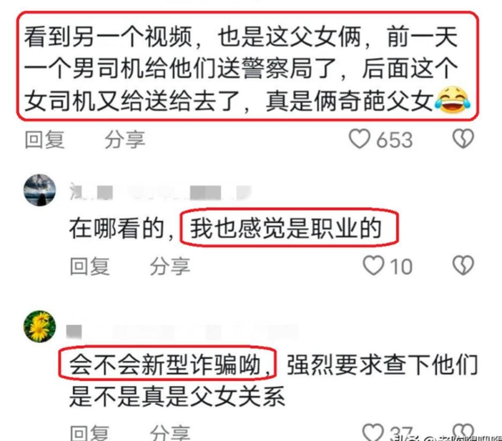 我们认为,这对父女是职业敲诈者的可能性并不大。其一,一般的职业敲诈者,就是怕对方报警,但这对父女不为所动。其二,他们赖在车上不下来的行为,投入产出并不划算。如果他们以各种理由向网约车司机索要赔偿为生,也不难留下记录,警方一查便知。