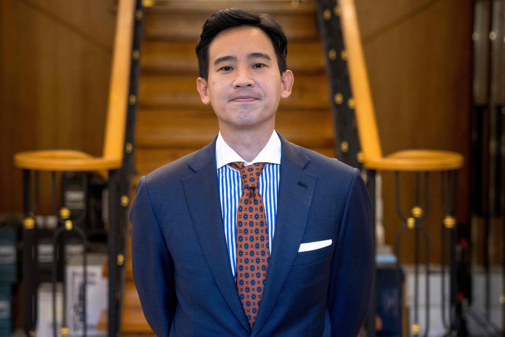 当地时间2023年5月17日,泰国曼谷,在一家餐馆门口,泰国远进党党魁和总理候选人皮塔等待与潜在的联盟伙伴会面。