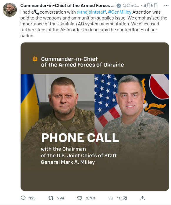 但即便该账号是20日更新的最新一期内容,但截至目前也没法作为扎卢日内目前健康状况的佐证。一方面因为,这一社交媒体账号完全可以由乌方相关团队来运营,并不一定要由乌军总司令本人来发布;另一方面美军方截至目前也没有证实本次通话确实存在。当然美方即便心知肚明,也很可能不会对外说明相关情况。