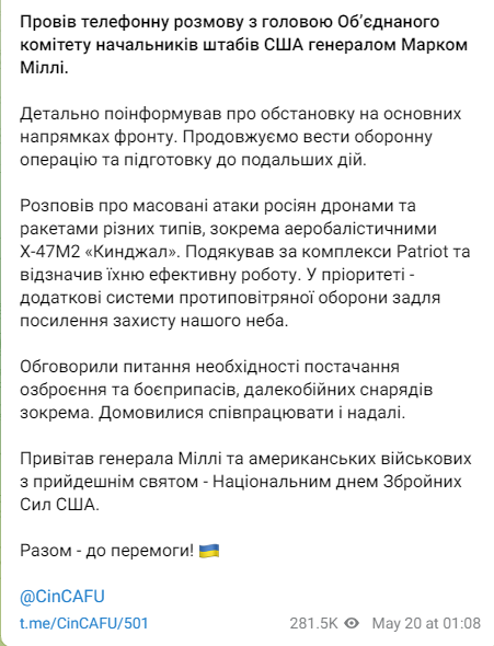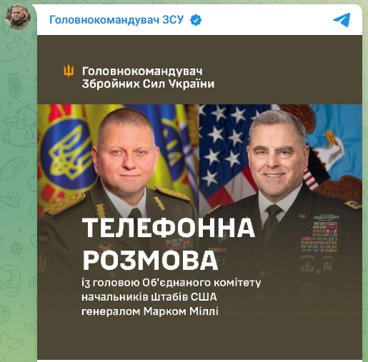 而扎卢日内的电报账号近日则更新了他与米利近期通话的内容,相关内容也被乌克兰《真理报》等媒体转引。