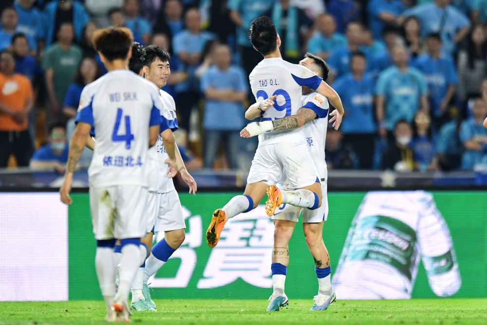 而三镇的进攻逐渐搞活,先是第37分钟,三镇团队配合后,谢鹏飞贴地斩打破僵局;然后是第45分钟,陶强龙禁区内胸部停球转身抽射破门。