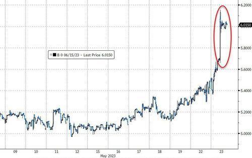 6月到期的一个月期美债收益率上逼6%,刷新历史最高