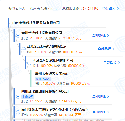 目前,中创新航第一大股东为常州市金坛区国有企业常州金沙科技投资有限公司,持股比例约为21%;第二大股东是成飞集成(002190.SZ),持股比例约为12.6%。