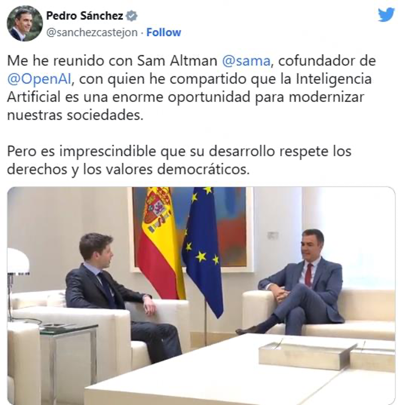 图1:奥特曼首先与西班牙首相佩德罗·桑切斯会面
