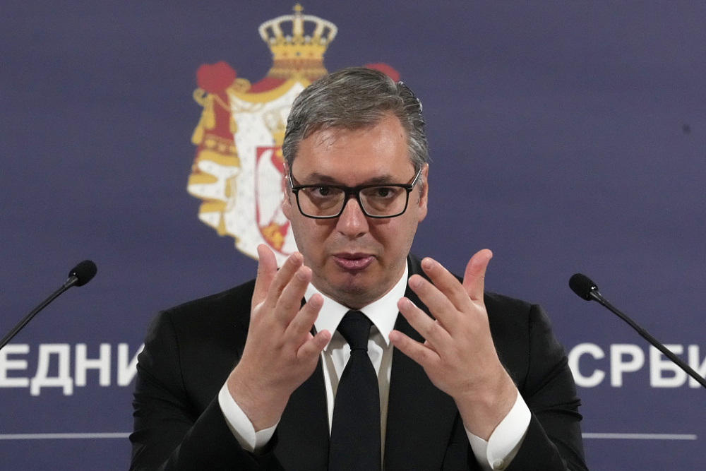 当地时间2023年5月27日,塞尔维亚贝尔格莱德,塞尔维亚总统武契奇在塞尔维亚国家安全委员会会议上发表讲话。 本文图片均来自视觉中国
