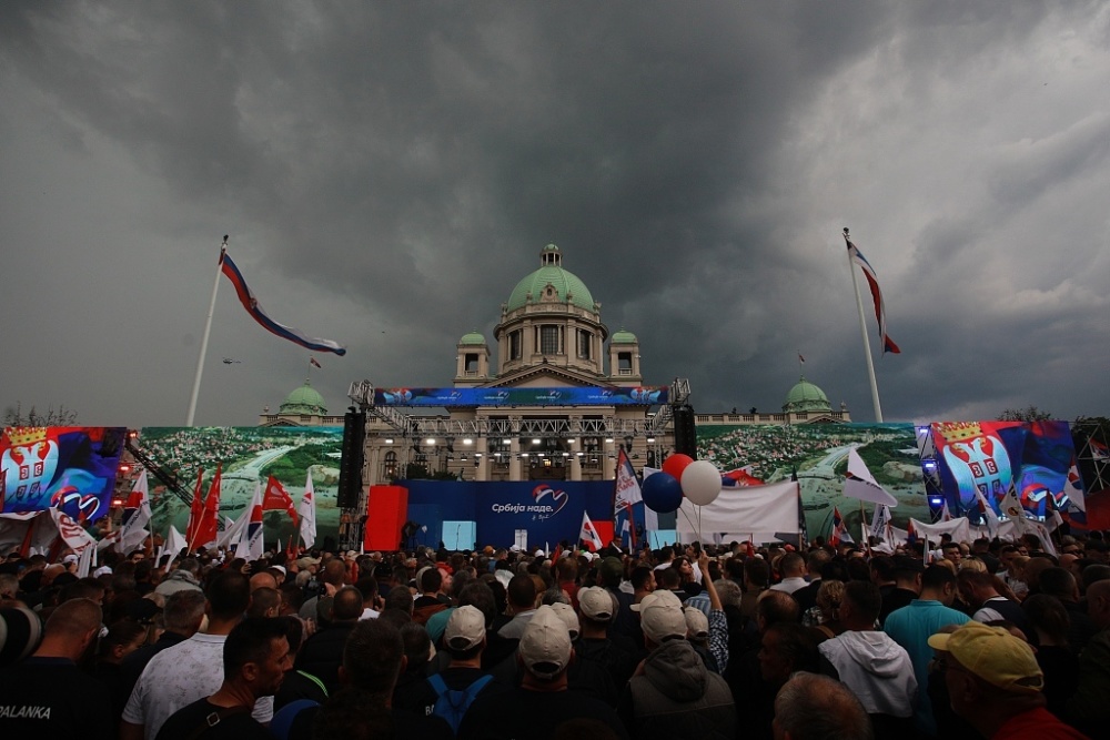 5月26日下午开始,来自全国各地成千上万的民众陆续聚集到塞尔维亚议会前,他们高举塞尔维亚国旗和标语举行集会,以表达对武契奇的支持。在塞尔维亚国歌声响起后,塞尔维亚各界代表先后上台发表演讲,晚些时候,民众们迎来了武契奇。