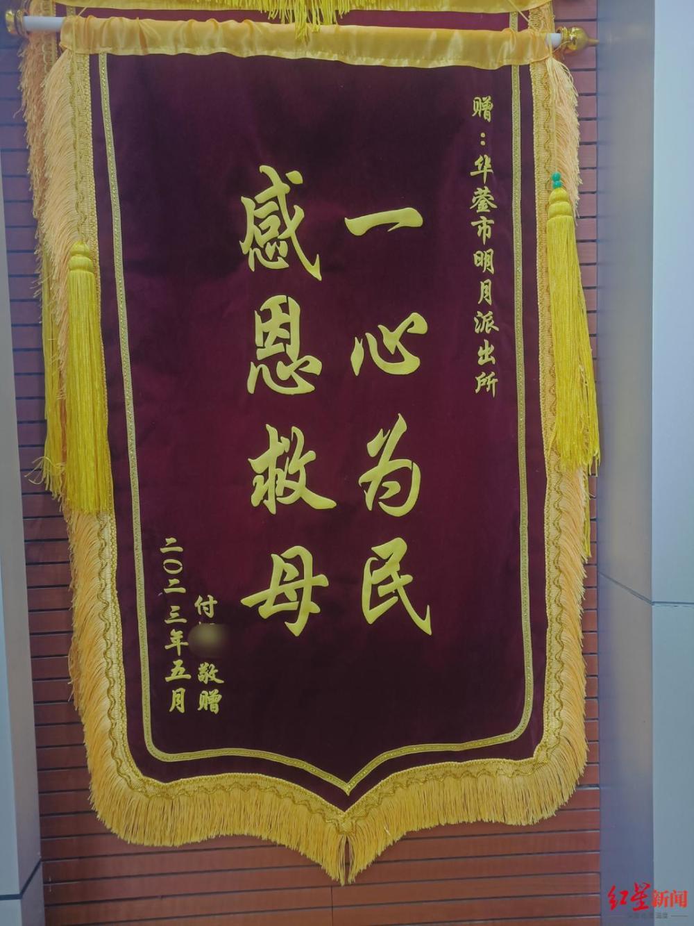 母亲出院前,付先生在深圳特地找人制作了一面写着“一心为民,感恩救母”的锦旗,快递到明月派出所,向派出所的民辅警表达感谢。