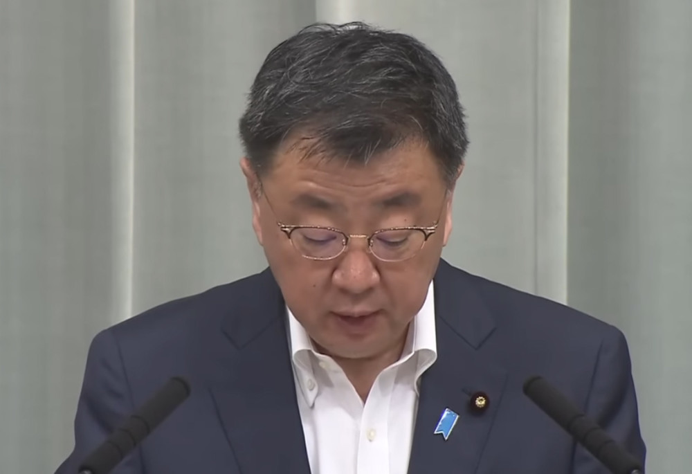 5月29日上午,日本内阁官房长官松野博一举行新闻发布会 视频截图