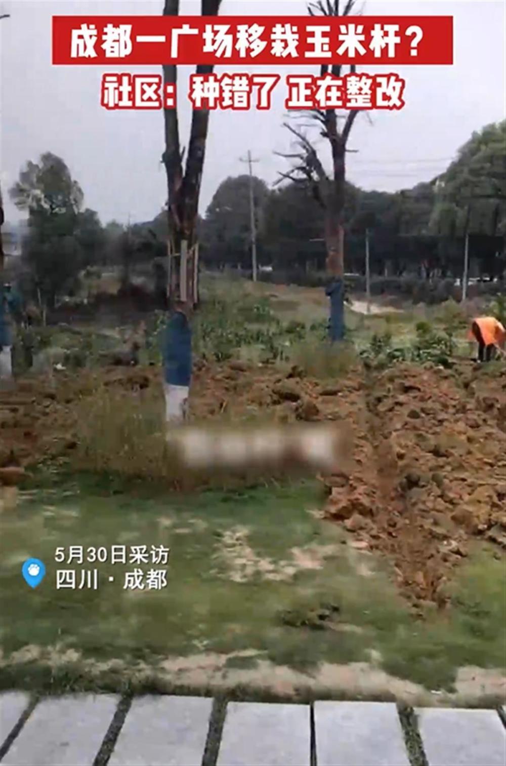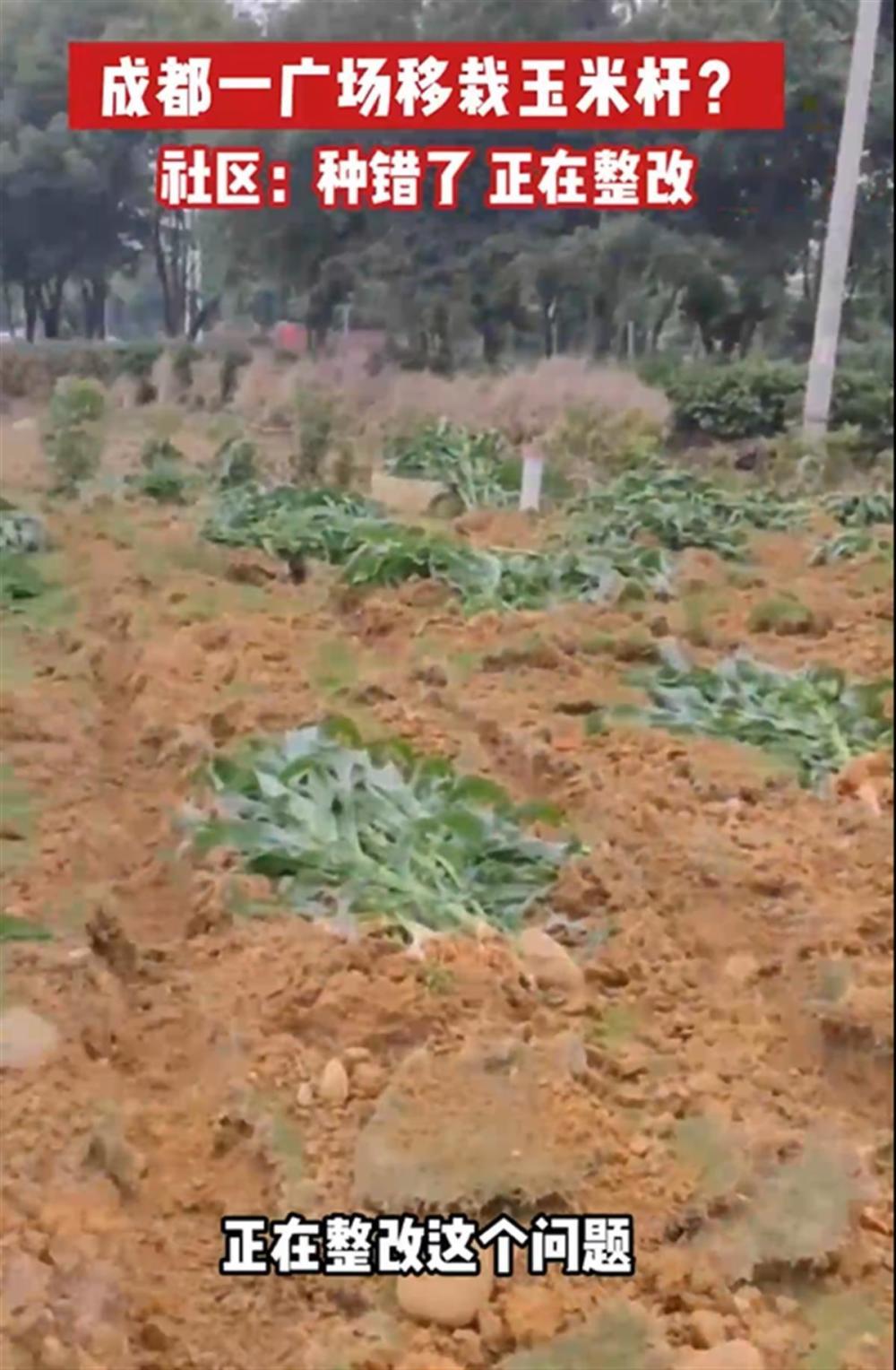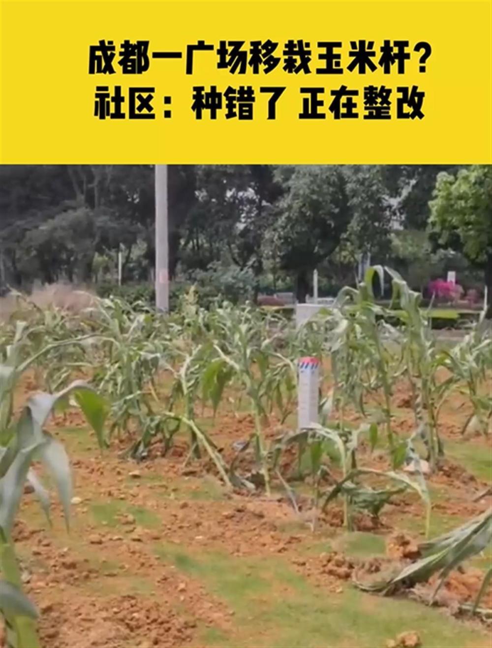 据视频中的怡心街道草坪社区工作人员回应,这个玉米种错了,正在整改,也不清楚是谁让移栽玉米的。