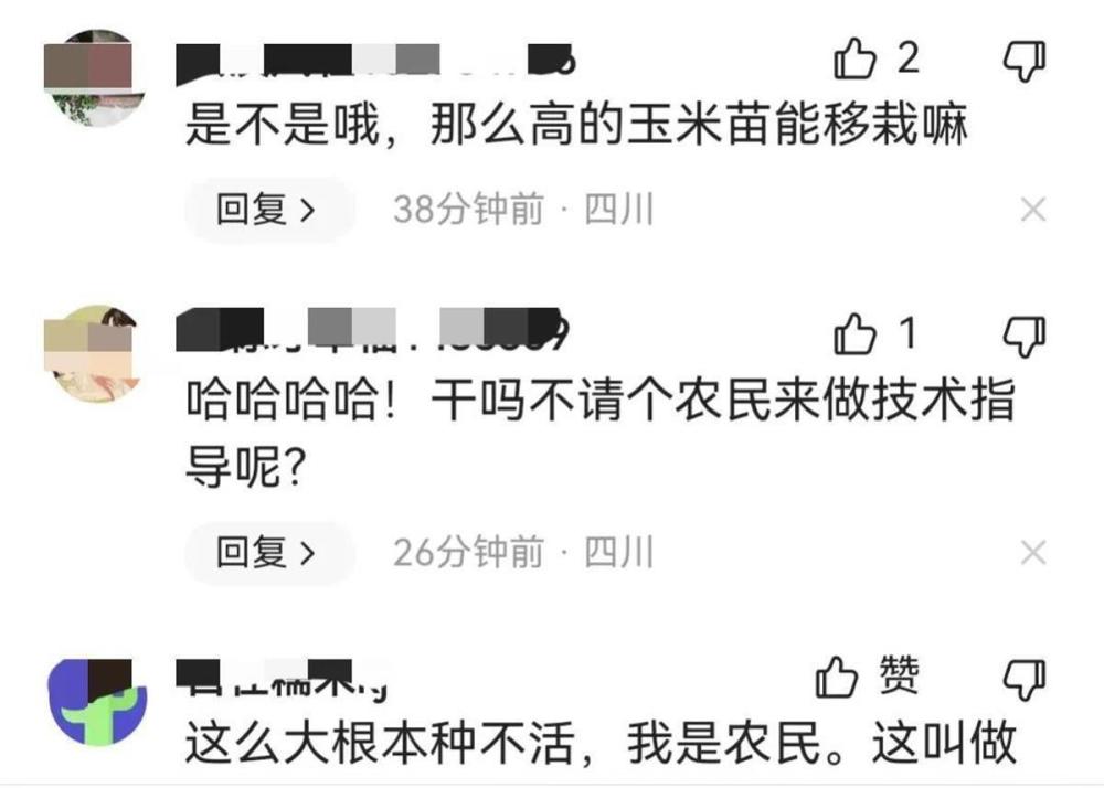 对此,网友质疑道,一句种错了就可以了事?这玉米苗是从哪里拔来的?马上就要出穗子了,挖出来岂不是可惜,这是种粮还是毁粮,形式主义何时休?