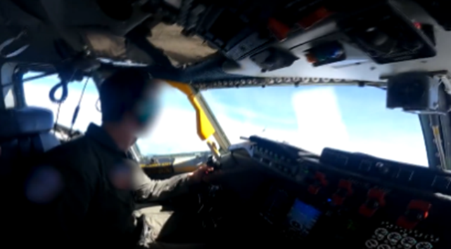 美军公布视频截图,图为美军机飞行员在驾驶舱内看向中国战机