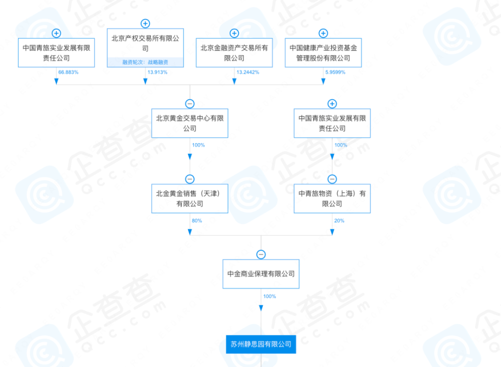 企查查APP显示,中青旅实业公司通过两家公司对静思园间接持股。