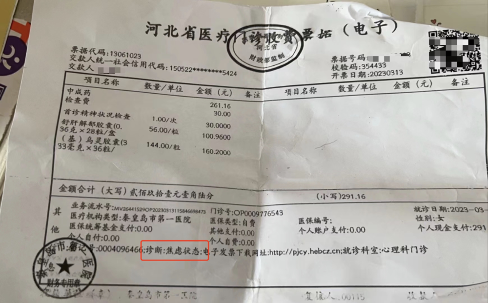 两位受害少女家属向红星新闻记者介绍,事发后,13岁的小丽精神状态受到了影响,晚上常常失眠且莫名其妙流眼泪,他们已带她到秦皇岛第一医院做了精神检查和治疗。小丽家属提供的病例显示,事发后的3月12日,小丽在秦皇岛市第一医院心理科门诊被诊断为焦虑状态。小丽监护人还表示,现在小可辍学在家,出现割手腕等自残行为。