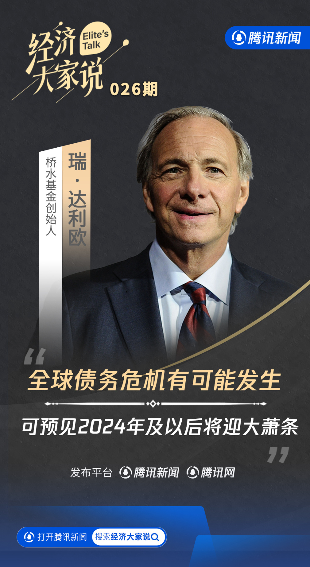 专访达利欧:全球债务危机有可能发生 可预见2024年及以后将迎大萧条