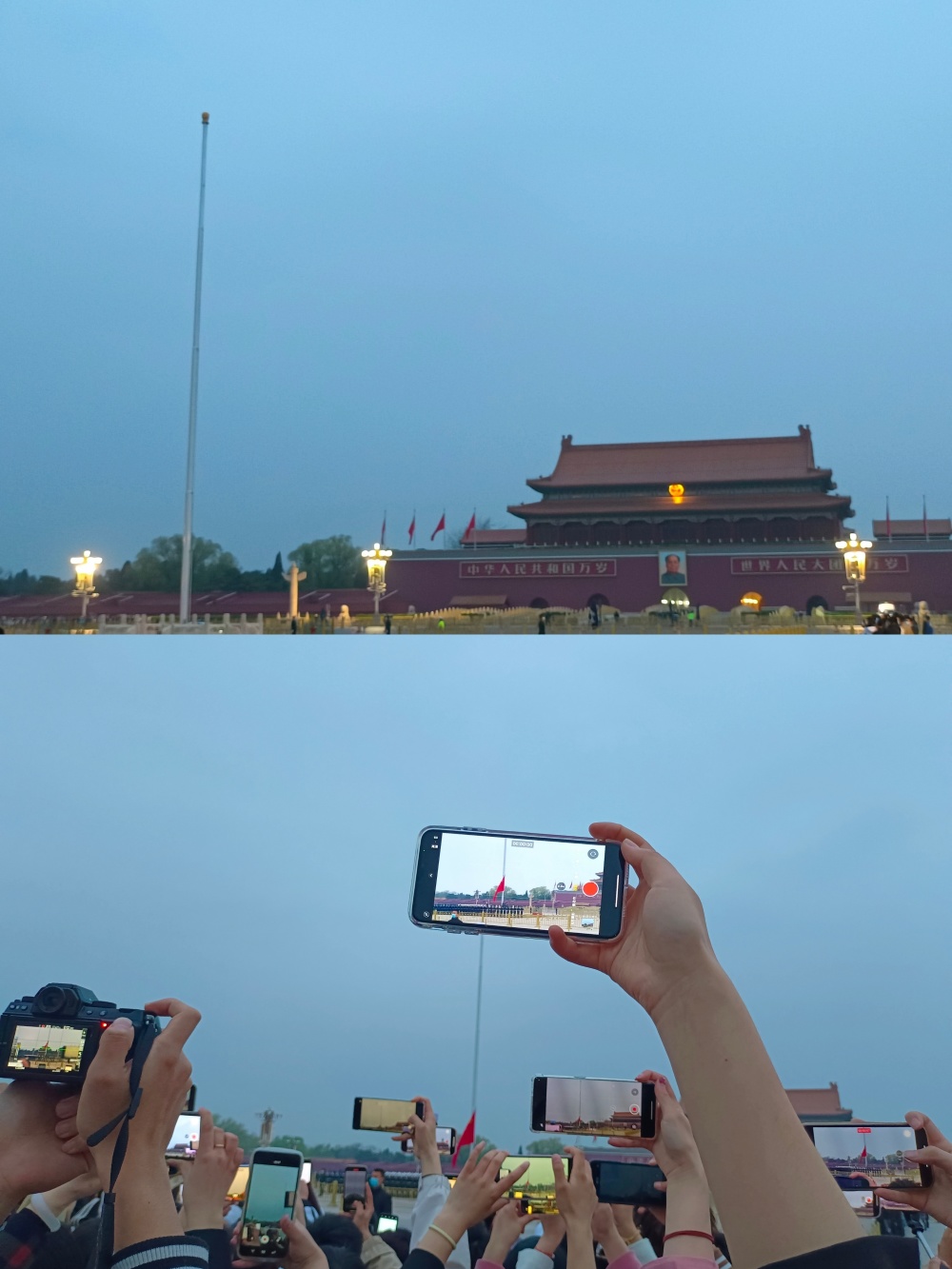 旅行第一天,王云一行四个人坐了一夜硬座,车厢内不熄灯,烟味、汗味、泡面味混杂在一起,她们最多休息了2个多小时。第二天,她们背着三四套衣服和化妆品,从早上六点开始,走了三万多步,“四个人都扛不住了”,临时在天安门附近找了酒店,“300多,环境不太好”,但可以休整一下,稍微恢复体力再去看升旗。按照攻略,她们凌晨2点半到了天安门,已经抢不到前排,过完最后一道安检,该冲刺了,但“早上太困了,完全跑不动”,意识还在迷糊状态,身体在下坠,全凭本能抬腿,像八百米刚跑到第二圈中间,但身边的人都仿佛大学体测五十米冲刺的速度,“最少八秒八及格水平吧,真的太卷了”。她们后来没有抢到很前排的位置,不过百闻不如一见,“值了”。