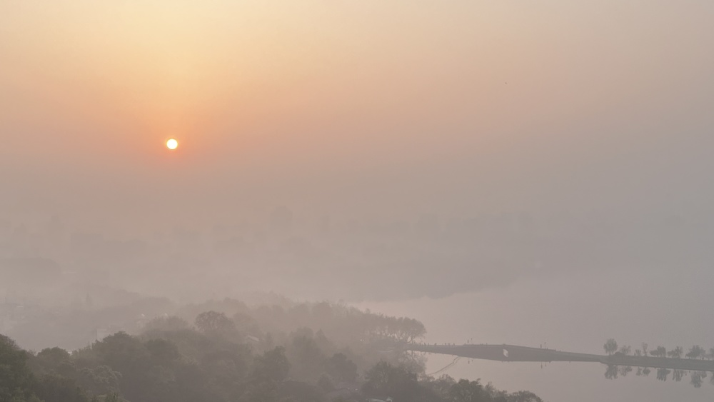 第二天晚上,她一直纠结第三天去不去乌镇,失眠到了凌晨三四点,干脆起床出门看日出。在网上搜“西湖附近看日出”,有人推荐宝石山,她简单收拾下就出门了。山并不好爬,天特别黑,路上没有灯,仅靠微弱的手机光,周围也根本没人,张苏童内心有点忐忑,只能硬着头皮往上爬。大概爬到三分之一处,她终于碰到一对情侣,内心长吁一口气,跟着他们上去。五点多到山顶后,已经有一些人聚集在那儿,那天雾特别大,山顶很冷,她一直哈气,等到六点时太阳隐隐约约地出现,虽然不明显,但所有人都非常激动,“你知道吗?爬山和等待的过程更有意思,看不看到日出也无所谓了”。