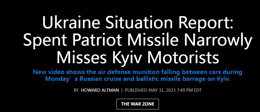 5月31日发布的最新一期“乌克兰局势报告”的标题为“用完的爱国者导弹险些击中基辅驾车者”。