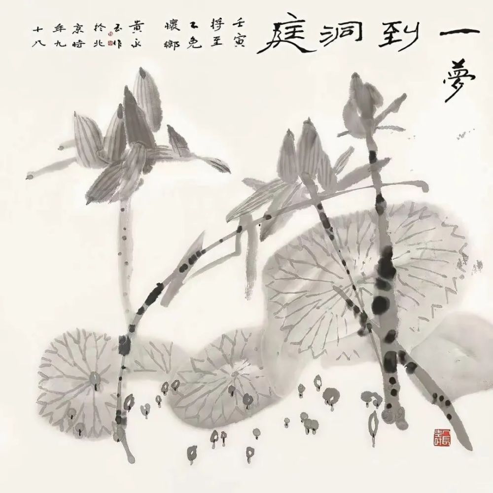 黄永玉听到这件事后,不再说话。房间里只有水池里的流水声。几天后再次拜访,一见面他就要我看新画,那是一幅淡墨荷花,题名《一梦到洞庭》。他指着上面的荷花,“曾祺看了会开心的。”