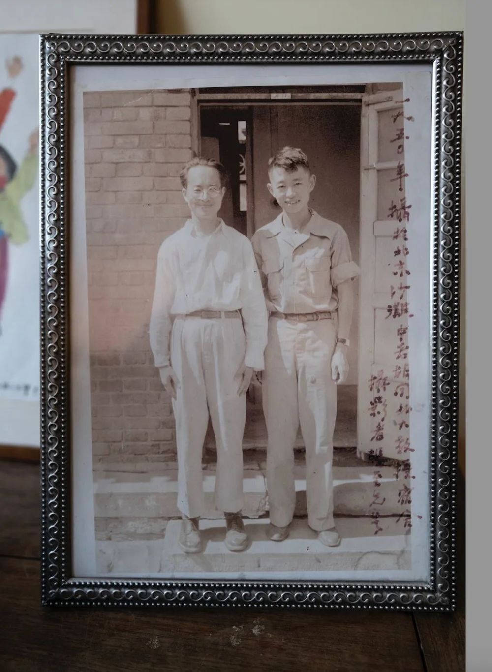 家里的餐桌前挂着一副对联,他在题跋里写道,“人老不怕,就怕颓废和意志消沉。看我们今天多带劲!所以今天我写这副不对仗的对联来长长我们老头老太太的志气,什么七十不留宿,八十不留饭的混蛋话!”