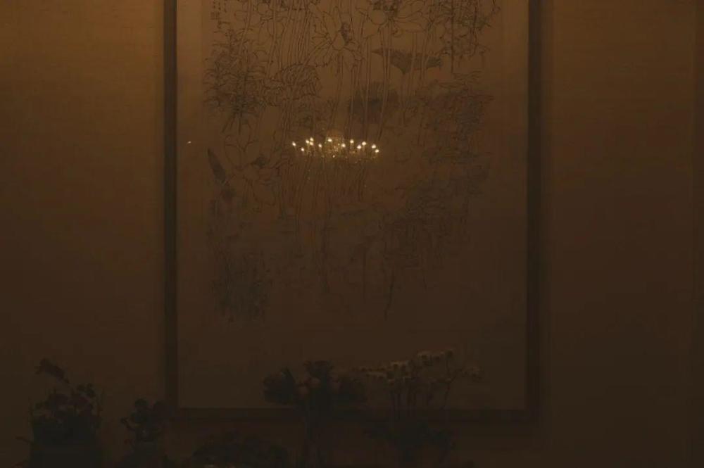 2022年新年第一天,他完成了撕毁五次才画完的那幅画。这幅画悬挂在客厅里,湛蓝的天空下星星点点,家家户户亮着灯,守着一汪平静的湖水,花尽情绽放,题名《今夜》。画前题字是这样一段话: