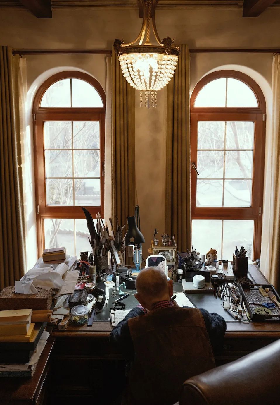 金钱、声名、艺术、人情,在黄永玉身上是混沌的边界。这位艺术家勤奋地画画,但他也真诚地喜欢钱,喜欢大宝石,喜欢最新的跑车。成为他的朋友其中一项标志是,他会热情地拉着你去书房参观他的宝贝。拉开抽屉,里面是一枚红宝石戒指、一个手表,还有一沓写着“黄永玉 收”的信封,那是每一次作品发表后寄来的稿费,全是现金。但他的快乐仅限于展示,关上抽屉,黄永玉还是黄永玉,穿70年前买的风衣,用小木匠给他做的木刻刀,喜欢吃女儿做的腌黄瓜。