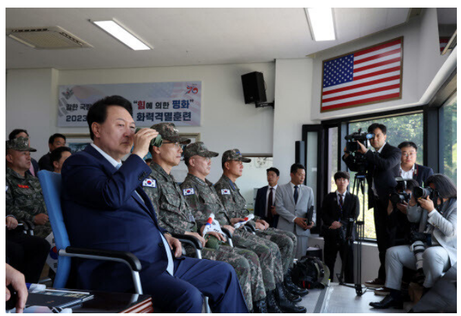 尹锡悦在演训结束后发表讲话称,不要依靠敌方善意的假和平,而是要依靠我们的力量守护国家安全的真和平。只有能打胜仗、无法让敌人轻视的强军,才能保障韩国的自由、和平和繁荣。