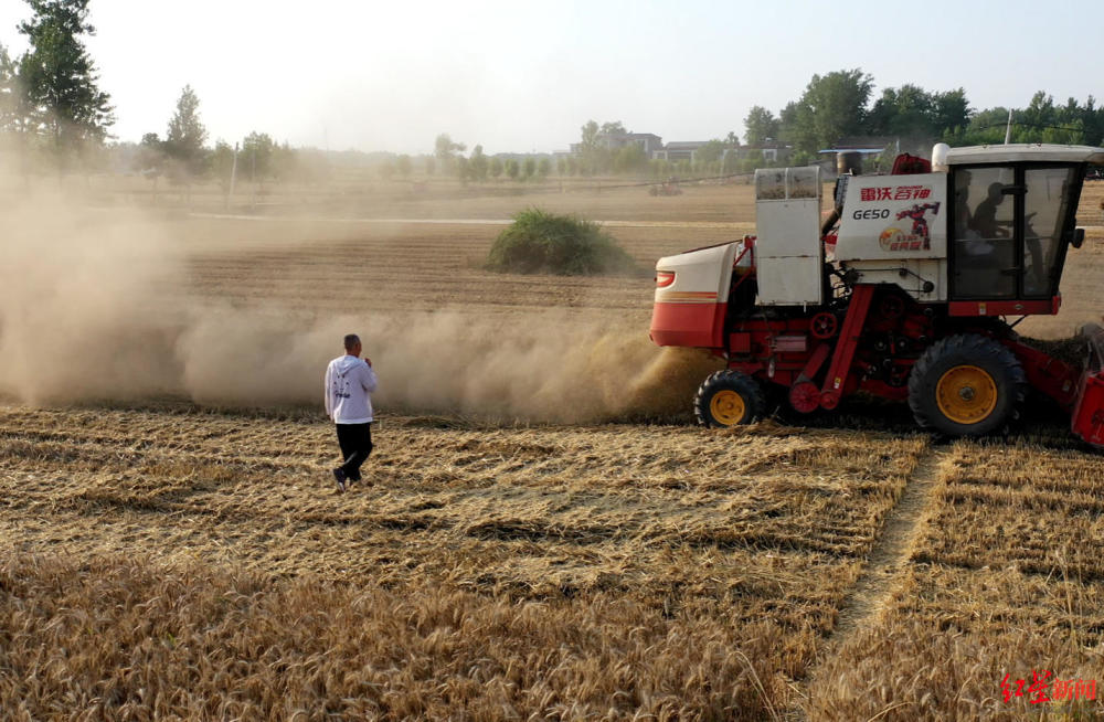 抢收麦子的时候到了,村里唯一一台收割机驶过麦田,在齿轮翻滚中卷起秸秆粉尘。谢哲海跟在后面,收掉边沿的麦穗,粉尘很快将他淹没。太阳西落拉长树影,他拨开麦子,走出尘烟。
