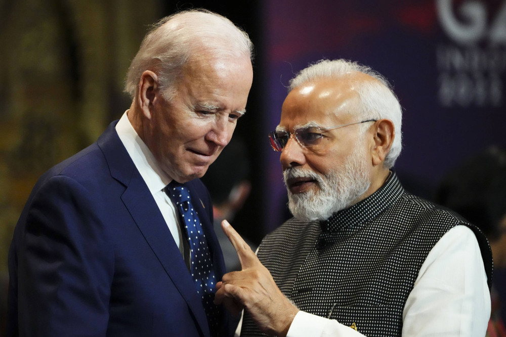 资料图:2022年11月,印度总理莫迪和美国总统拜登在二十国集团峰会期间交谈 图自视觉中国