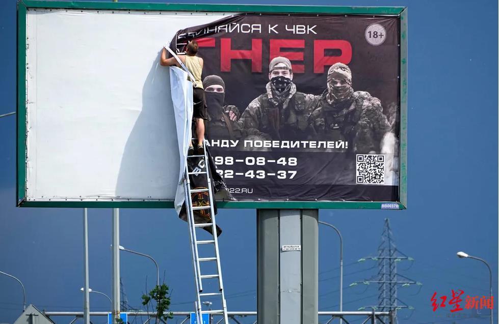 ↑24日当天,俄罗斯圣彼得堡,“瓦格纳”征兵广告被拆除