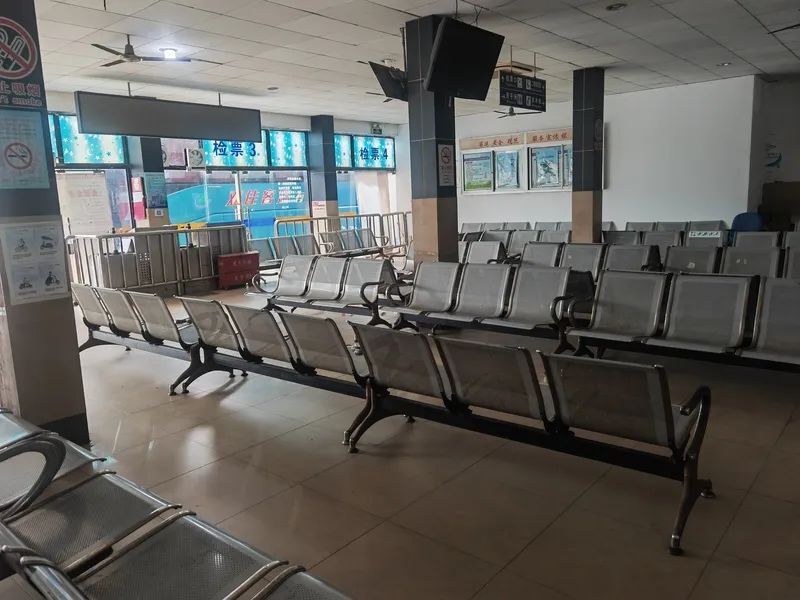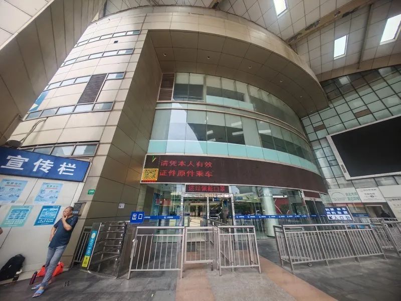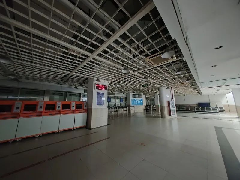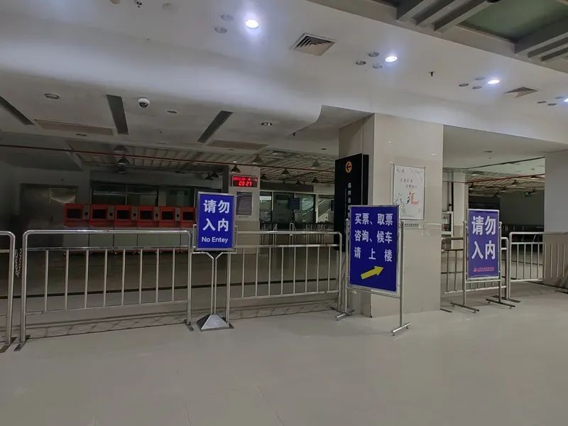 沿马路的售票室近期已经关闭,墙面上覆盖着大大的彩色尼龙布,售票室被迁移至候车大厅内。