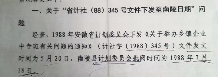 1991年7月起,张涛多次到安徽省教育厅、芜湖市教育局试图查看这份文件,“省教育厅只有关于乡企班的一些资料,文件最终是在县计划委员会找到的。”张涛指出,当时的县教育局是不知道这份文件的。