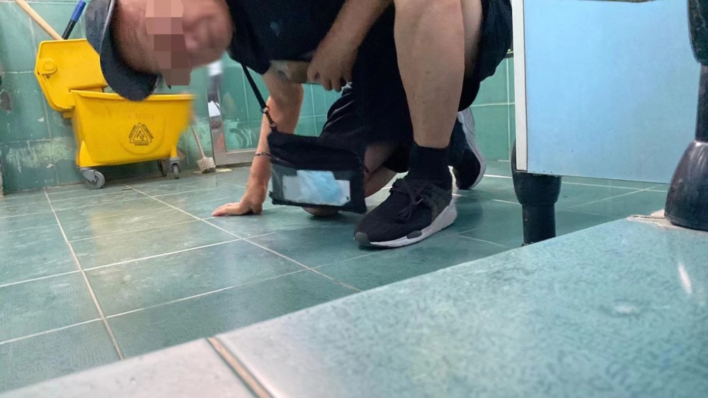 周心怡拍到一个老年男子在她上厕所时偷窥和偷拍。受访者供图