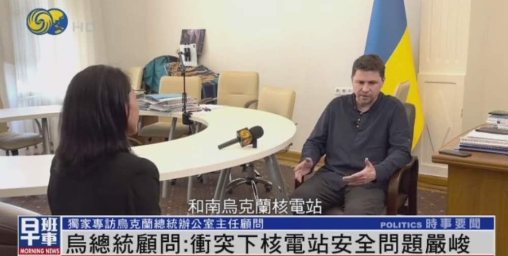 到目前为止, 凤凰卫视是第一个也是唯一一个获准进入乌克兰总统府进行拍摄的中国媒体。乌克兰总统办公室主任顾问波多利亚克接受了凤凰卫视特派乌克兰记者陈莹的独家专访,他就乌克兰中央政府在和谈及核安全等问题上的态度作出回应。