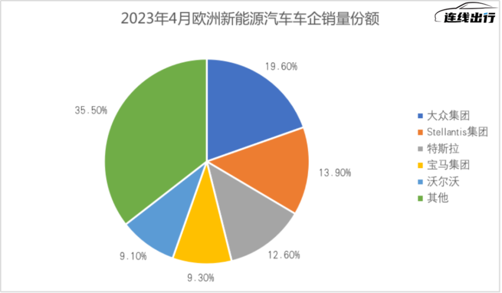 欧洲23年四月份前五名销售份额表,数据来源:CleanTechnica ,连线出行制图
