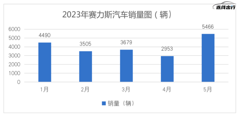 2023年赛力斯汽车销量图,数据来源上交所官网,连线出行制图