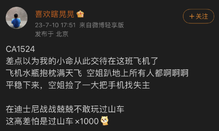也有很多网友分享了自己在飞机上遭遇颠簸的经历: