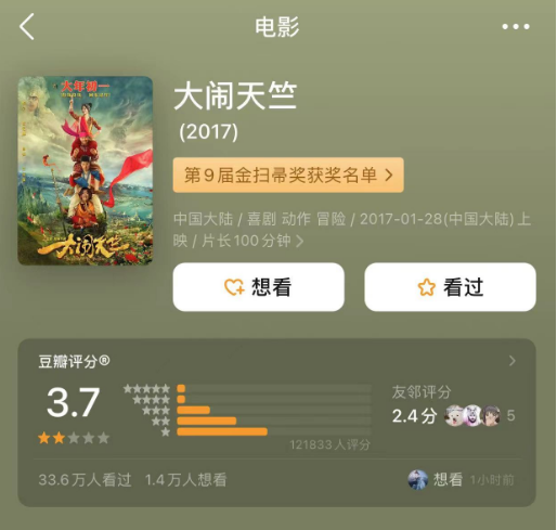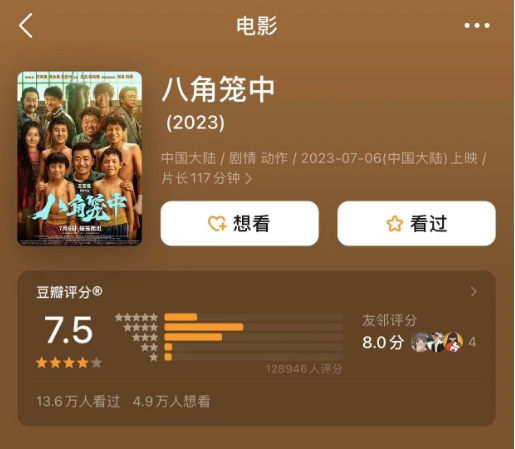 相较于王宝强首次执导作品《大闹天竺》,《八角笼中》口碑评分大幅提升