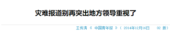 ——《灾难报道别再突出地方领导重视了》中国青年报