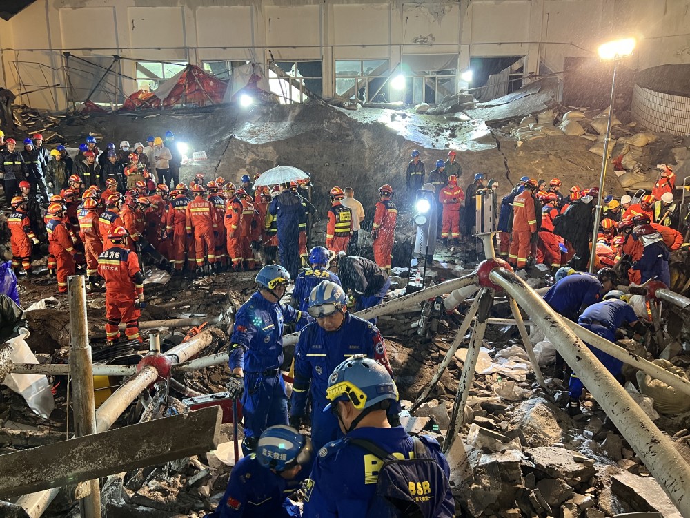最初,他们只知道有几名被困人员。根据他的初步观察,房顶整体坍塌,大量珍珠岩编织袋散布现场,加上降雨天气、被困人员具体位置不明确,给救援增加了一定的难度。