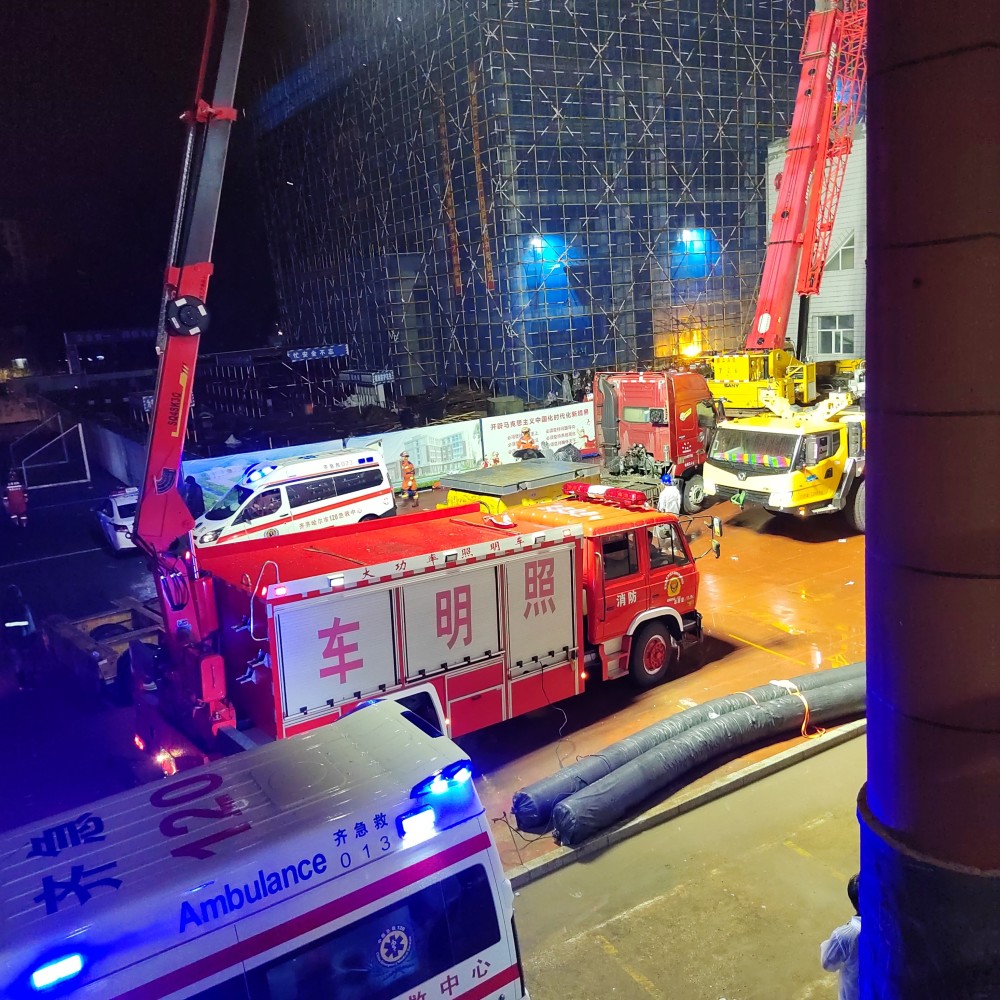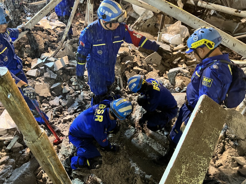王强说,23日15时40分,他们也接到救援任务,一共39名队员前往参与搜救。除个人防护装备以外,他和队友携带了照明强光手电、大锤、撬棍、大斧、凿岩机展开搜救。