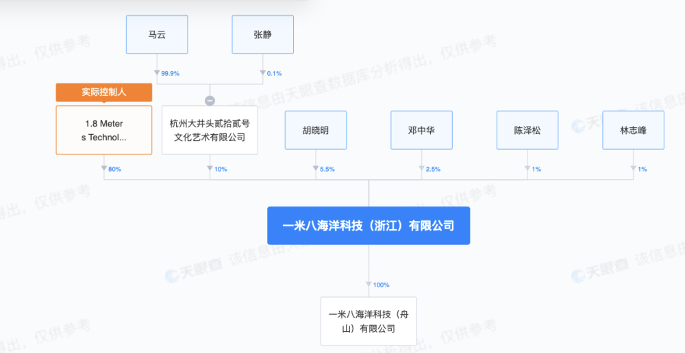 在上述股东中,因成立于2019年的杭州大井头贰拾贰号文化艺术有限公司实际控制人为马云,且“一米八”公司多名高管与阿里系员工同名,有媒体报道,上述投资是马云最新的投资动向,另“一米八”系公司不排除是阿里旗下的新业务板块,瞄准的则是智慧农业、智慧渔业等方向。