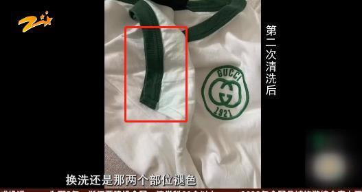 对于这个解释,杨先生不接受,他表示,自己多次购买过古驰品牌的T恤,都是一样的清洗方式,并没有出现过褪色:“我一直在穿古驰的,也是相信这个大品牌,没想到是这个质量。”