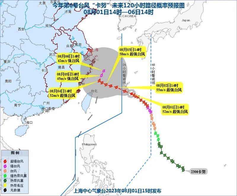 根据上海中心气象台预测,“卡努”台风中心将在今天(2日)上午进入东海,向浙江中部至福建北部一带沿海靠近。进入东海之后引导气流变弱,移速变慢,4至6日可能在上述沿海海面回旋少动。