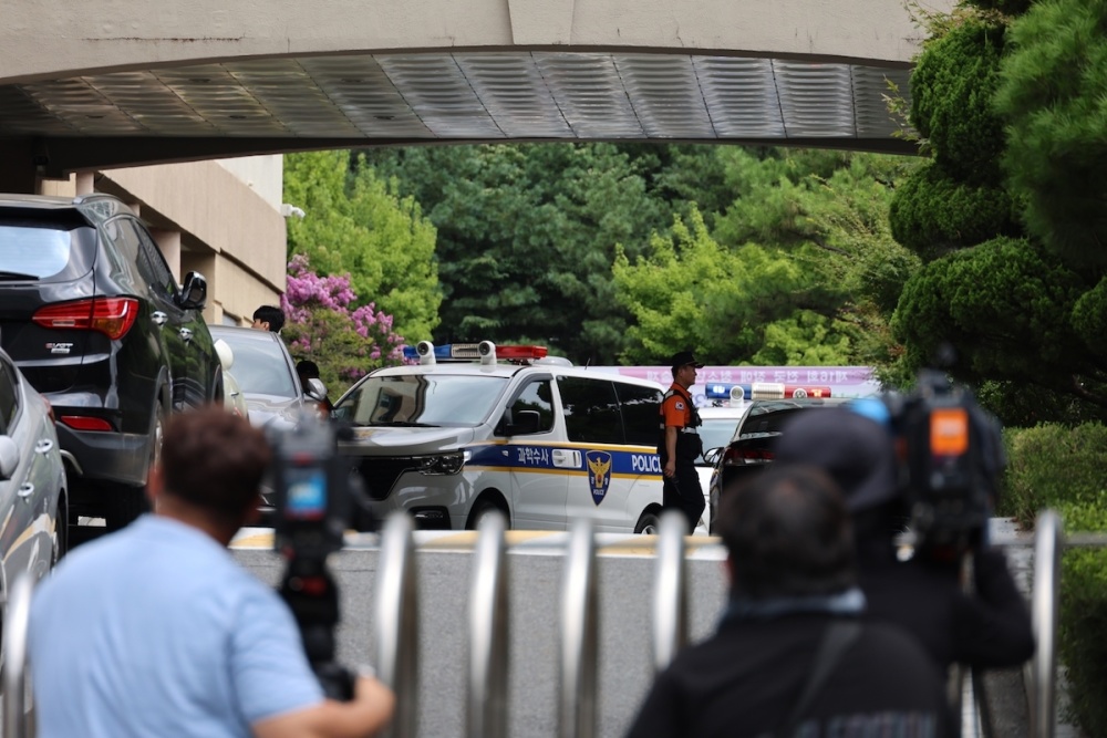 当地时间2023年8月4日,韩国大田市,当地一所高中发生持刀伤人事件,警方正在追捕犯罪嫌疑人。