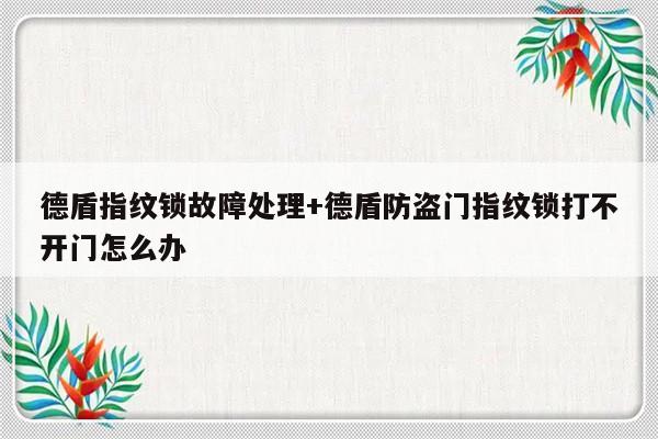 很多朋友对于德盾指纹锁故障处理和德盾防盗门指纹锁打不开门怎么办不太懂,今天就由小编来为大家分享,希望可以帮助到大家,下面一起来看看吧!