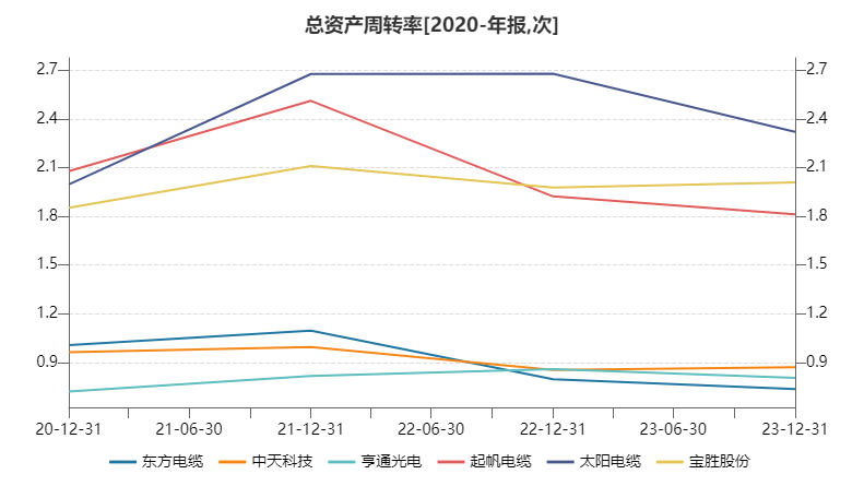 虽海缆行业的先发优势明显,但新加入者也可以通过提升周转运营能力实现追赶。三家龙头企业或是受制于庞大的资产规模、海缆各电压等级需求结构调整等因素的影响,其资产周转率都显著较低,2022-2023年其总资产周转率均在0.9以下。而其他行业参与者的资产周转率明显更高,起帆电缆和宝胜股份2023年的资产周转率在2.0左右,而太阳电缆的资产周转率则更高,贴近2.4水平。